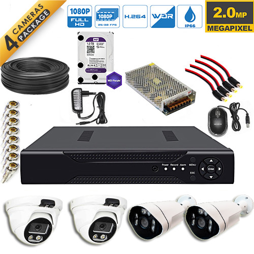 پکیج 4 کانال دوربین مداربسته فلزی سقفی و دیواری دید در شب رنگی (هارد 1 ترابایت)