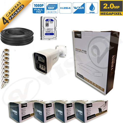 پکیج 4 کانال دوربین مداربسته فلزی برند وی ویژن دید در شب رنگی (هارد 500 گیگابایت)