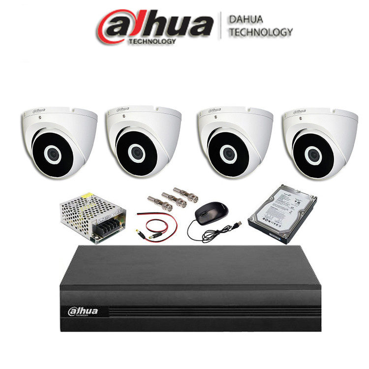 پکیج 4 دوربین داهوا فوق شامل 4 عدد دوربین سقفی فلزی مدل DH-HAC-T2A21Pدوربین ها دارای زاویه دید 106درجه و دید در شب بوده و تا 40متر مربع را در شب پوشش میدهد . یک عدد دستگاه 4 کانال داهوا مدل XVR-1B04 که قابلیت اتصال 4 عدد دوربین HD و 1 عدد دوربین شبکه (IP CAMERA) را دارد. و ساپورت دوربین و ضبط تا کیفیت 2 مگاپیکسل را دارد و علاوه بر ساپورت دوربین های سی وی آر قابلیت اتصال دوربین انالوگ، TVI ،CVI ،AHD را نیز دارد. این دستگاه دارای یک عدد ورودی صدا و یک عدد خروجی صدا، خروجی HDMI ،VGA و AV ، فرمت ضبط H264، قابلیت ضبط حساس به حرکت، پشتیبانی از سرویس انتقال تصویر P2P نیز میباشد